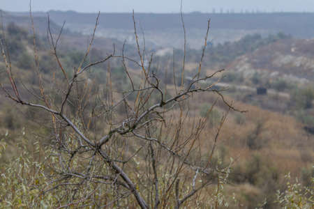 Savanna desert tree shrub, close-up. bush on nature park, outdoors