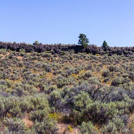 Colorful sage brush, juniper and volcanic rock in the high desert of eastern Oregon