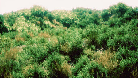 Bright sunlight illuminates a rich landscape of green shrubs and foliage. Various shades of green create a lively scene, inviting exploration and appreciation of natures beauty.