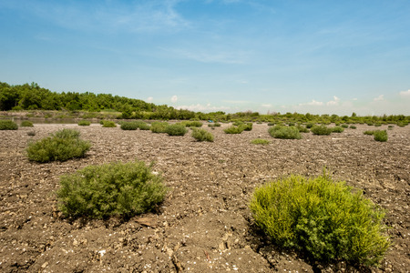 Bretignolles sur Mer, France - October 9, 2019: view of a nature transformed by the passage of buldozer in a zone of protest ZAD (Acronym of Zone to Defend) against the construction of the port