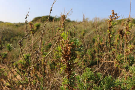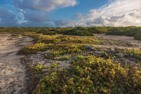 Beautiful dunes' plants in autumn. Atlantic ocean coast in Portugal.
