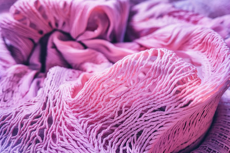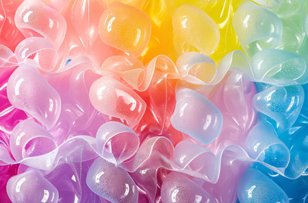 A stunning display of vibrant fabric textures in various rainbow shades creates a lively and engaging design. This colorful textile drapes elegantly, showcasing the beauty of soft waves and gentle folds. Perfect for artistic projects or fashion inspirations.