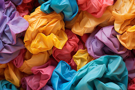 Vibrant collection of colorful textile scraps showcases a mixture of materials perfect for crafting and design projects, encapsulating creativity and recycling.