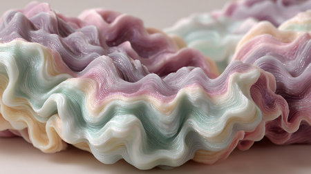 Colorful folded cloths on a light background, showcasing a variety of soft pastel hues The fabric appears cozy and inviting, ideal for home decoration or fashion concepts