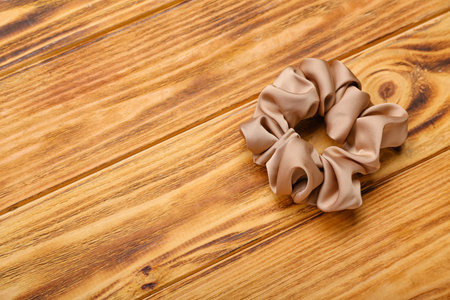 Silk scrunchy on wooden background