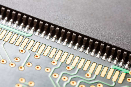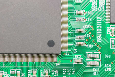 Macro Close up of computer RAM chip; random access memory chip slot for PC motherboard