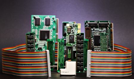 Many PC Computer motherboards. Circuit cpu chip mainboard core processor electronics devices. Old Motherboard digital chip. Technology background. Selective focus.
