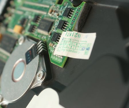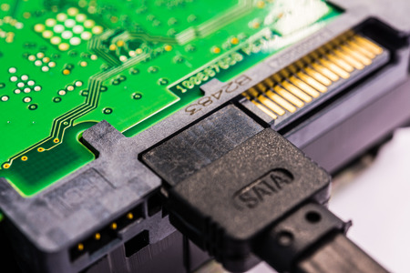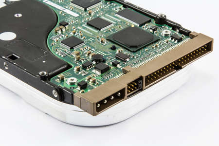 Stack of Hard Disk Drives. Pile of assembled hard drives. Isolated on white. soft focus