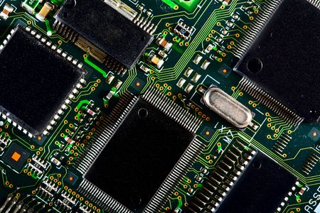 Computer board hardware motherboard microelectronics Server CPU chip semiconductor circuit core technology background or texture with processors concept electronic device