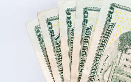 twenty American old dollars close-up, cash banknote of 20 American dollars
