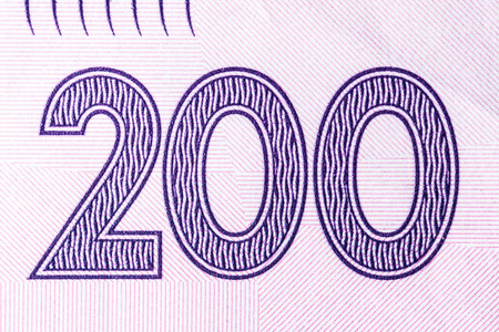 Ukrainian national currency, two hundred hryvnia close up. Horizontal frame