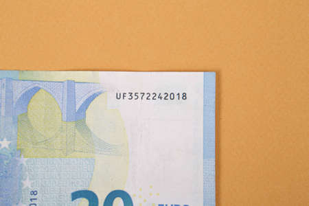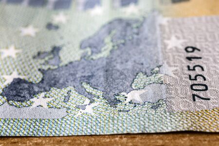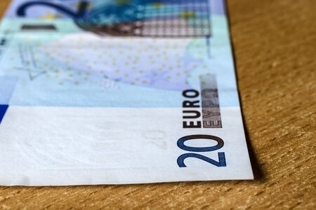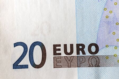 World money concept, macro detailed on a 20 Euro banknote, macro photo of EURO currency