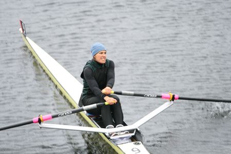 BOSTON - OCTOBER 19: In the Head of Charles Regatta, Adam Holland of the Charles River Rowing Associate, on October 19th, 2008 wins the Singles Master's Race.