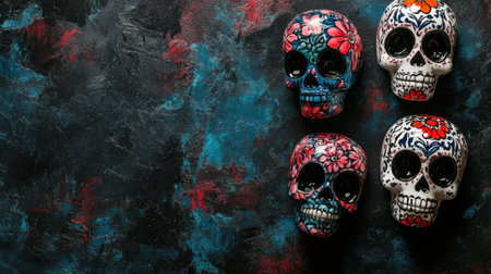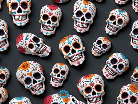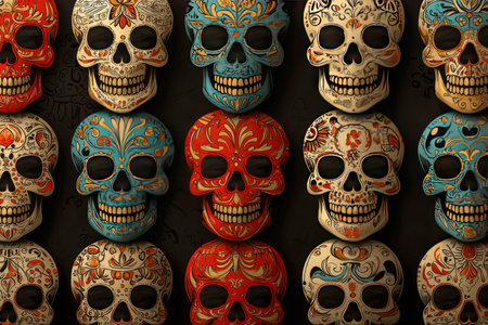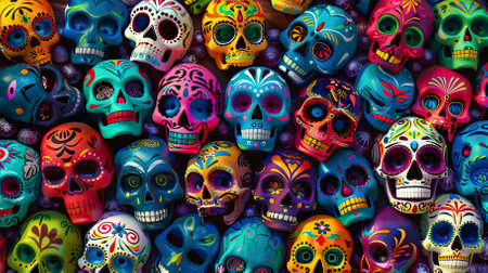 Mexican colorful sugar skulls background. Day of the Dead celebration.