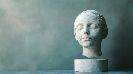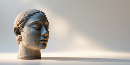 AI Generated. Stone head sculpture with closed eyes on a neutral background