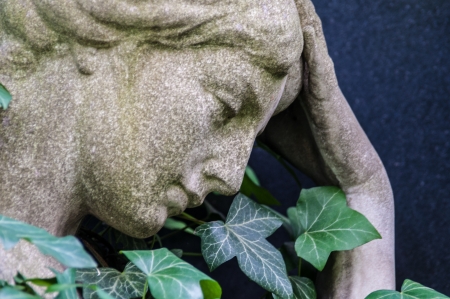 detail of a mourning sculpture on a cemetery