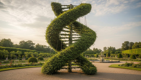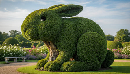 A tranquil bronze visage, aged gracefully with patina, peeks through vibrant foliage, embodied timeless calm amid nature's lush embrace.
