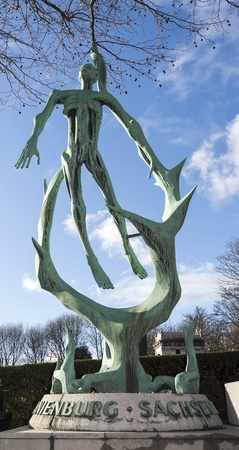 Figure on the south cemetery Leipzig surrounded by foliage