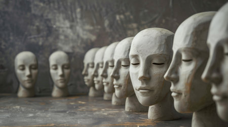 Unique paper mache sculptures showcasing expressive human features in an artistic exhibition