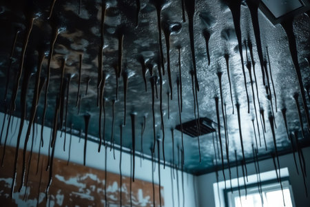 Traces on the ceiling from leaking water, abstract background. Generative AI