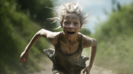talia alamuddin in mcbeth on dvd, captured in a post-apocalyptic surrealism style, featuring the wollensak 127mm f47 ektar lens. her performance exudes a naive childlike quality, with intense movement expression. the photo showcases a color palette of light gray and bronze, with spiky mounds adding an intriguing element. this associated press photo captures the essence of the scene. ai generated
