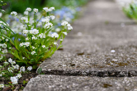 Little white wildgrowing spring flowers. Nature background. Blooming spring flowers.