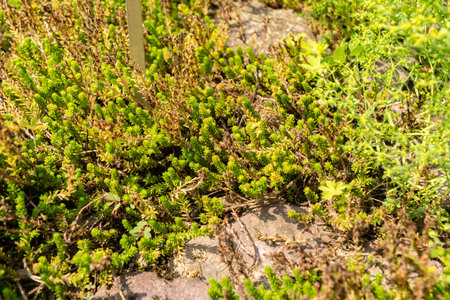 Zurich, Switzerland, August 6, 2025 Sedum Sexangulare or stonecrop plant at the botanical garden