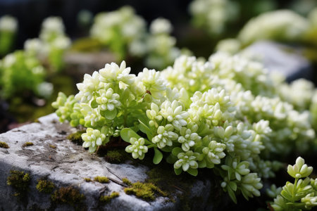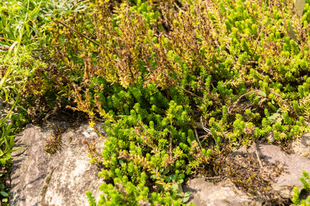 Prosperous Sedum album a type of White Stonecrop growing on tombstones