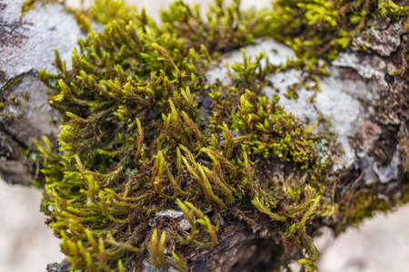 Beautiful green moss on the wood, moss closeup macro. natural background of moss for wallpaper