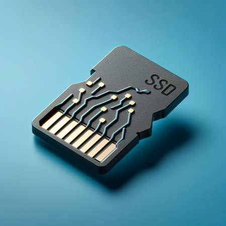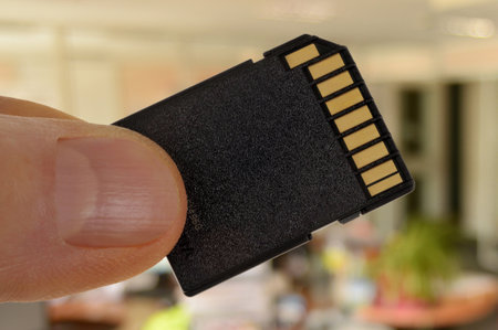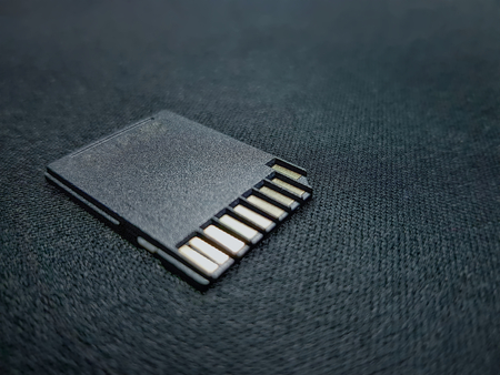 Close-up Black SD Card for Storing Media Files with Selective Focus