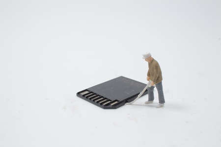 a Concept of data recovery. Worker working on sd card.