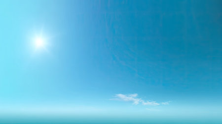 A stunning view of a clear blue sky above calm ocean water, with bright sunlight and soft clouds creating a tranquil scene ideal for relaxation and peaceful moments.