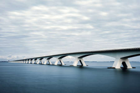 panoramic view of the Zeeland Bridge on the Eastern Scheldt, Netherlands.
