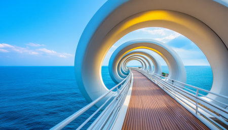 a spectacular landscape combines with bridge train and nature sitting on the coastline to coean.