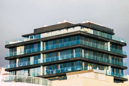 Tel Aviv Israel December 30, 2019 View of the facade of a modern building in the streets of Tel Aviv in the afternoon