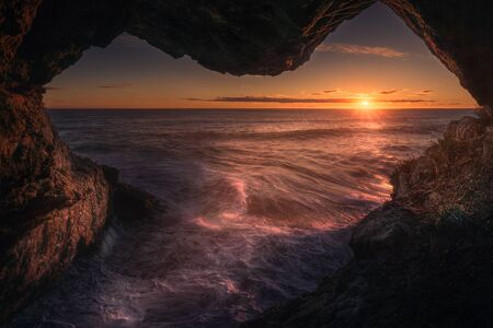 Beautiful seascape with a cave in the middle of the sea