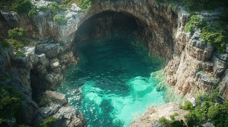 Cave with turquoise water in the sea. 3d render