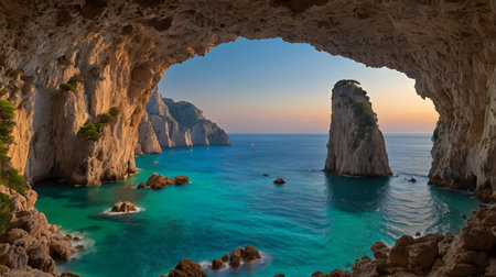 Capri island, Italy. Panoramic view from the cave