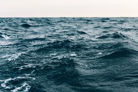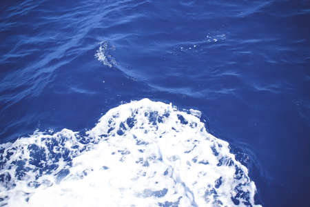 Blue Seawater with sea foam as background. Deep blue sea water with spray. Ocean water background