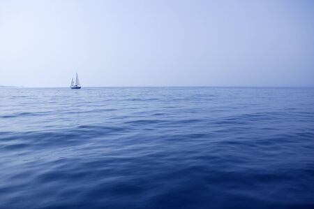 Blue sea with sailboat sailing the ocean surface summer vacation