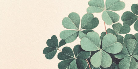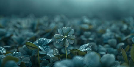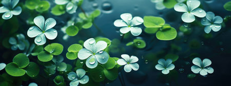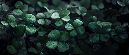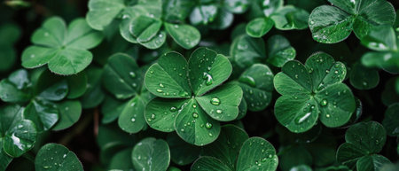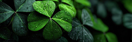 This captivating banner showcases an array of four-leaf clover leaves against a dark green backdrop, symbolizing luck and nature's intricate details
