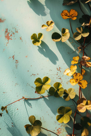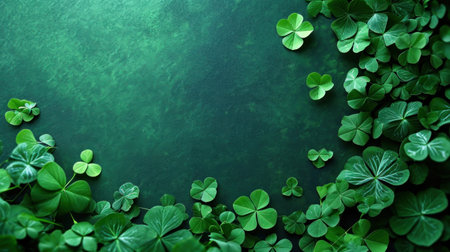 Shamrock leaves with small flowers framing a green background, natureinspired and fresh
