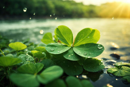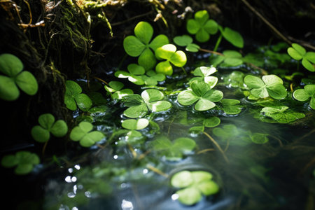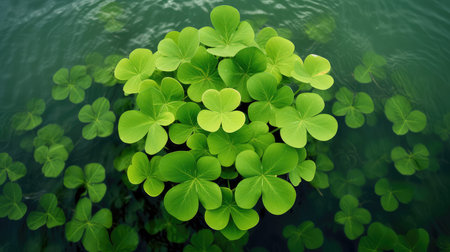 A water sanctuary becomes a canvas for St. Patrick's Day, adorned with the flourishing beauty of clover. The reflected greenery paints a tranquil picture of festivity