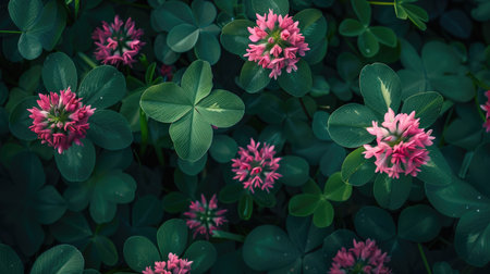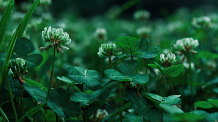 Small clover flowers spread across a tranquil green surface in natures embrace