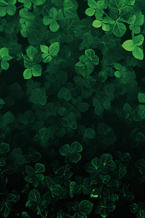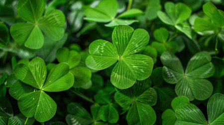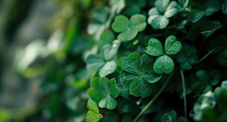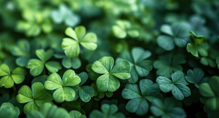 A close up photograph of vibrant green clovers under soft natural light, symbolizing luck and nature s beauty in a serene outdoor setting