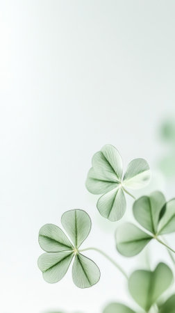Delicate Green Clover Leaves on Light Background Nature, Botanical, Minimalist, Stylish, Trendy.