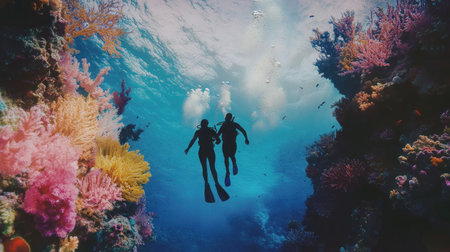 Experience the breathtaking beauty of an underwater world as divers and snorkelers discover vibrant coral reefs teeming with marine life Immerse yourself in the wonder and serenity of the marine ecosystem