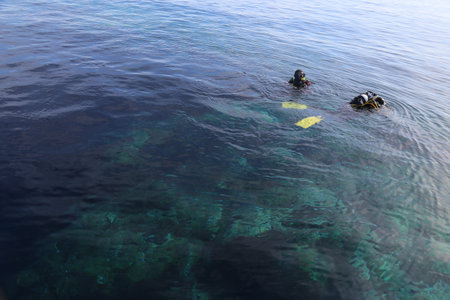 divers exploring fish underwater in the sea, beautiful diving background