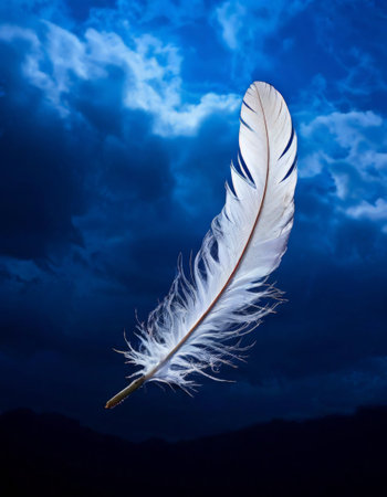 White feather floating against dramatic night sky