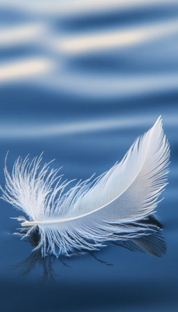 A Delicate Feather Drifting Peacefully Across a Smooth Lake, Symbolizing Nature s Tranquil Beauty